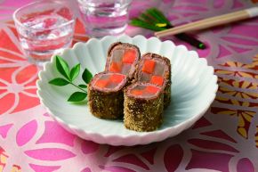 梅こんにゃく入りご飯の肉巻きロール