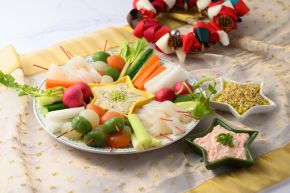 ⑦野菜は食べよくスティック状に切り、④のこんにゃくは串に刺して皿に盛り、ディップを添える。